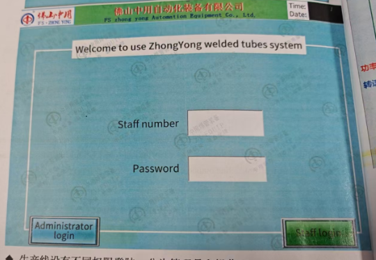 The intelligent welded pipe system features a multi-level login mechanism with two roles: Administrator and Operator. Each role has specific permissions and operational scope, ensuring safe and regulated production processes.