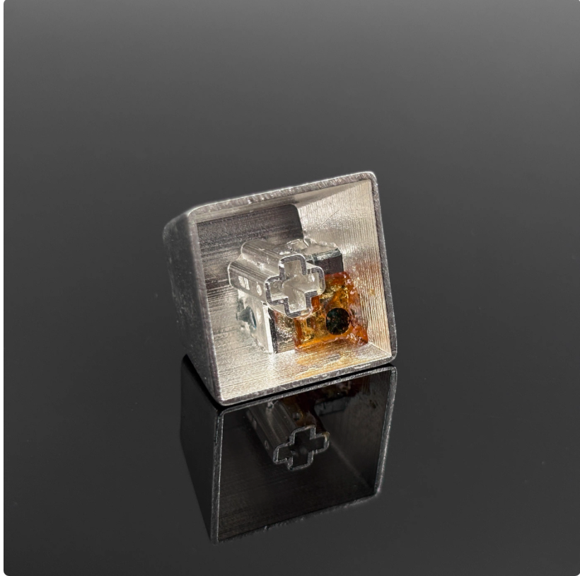 The natural weight of solid silver provides an exceptionally balanced typing feel, while the premium material develops a beautiful patina over time. Compatible with Cherry MX and most mechanical switches.